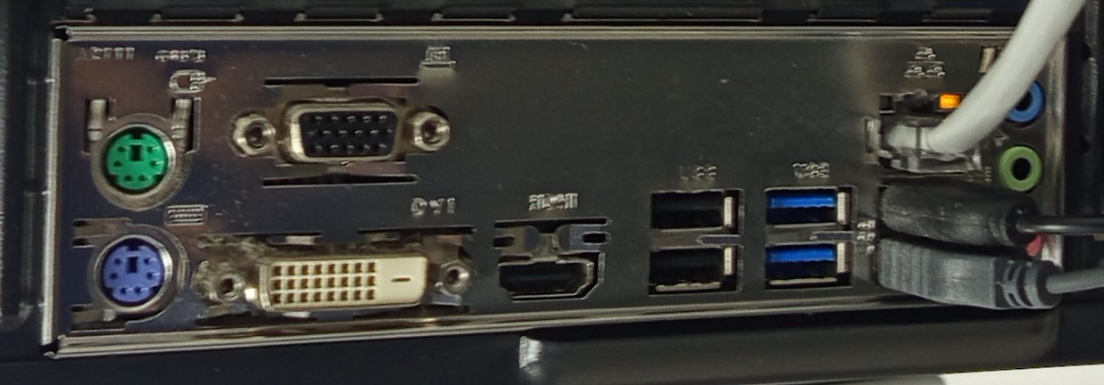 PS/2: Fueron los puertos utilizados por ratón y teclado, antes de la aparición del estándar USB. El morado era utilizado por el teclado y requería de una comunicación bidireccional. El mismo conector en color verde, era el utilizado por el raton. Ambos conectores empleaban seis pines.