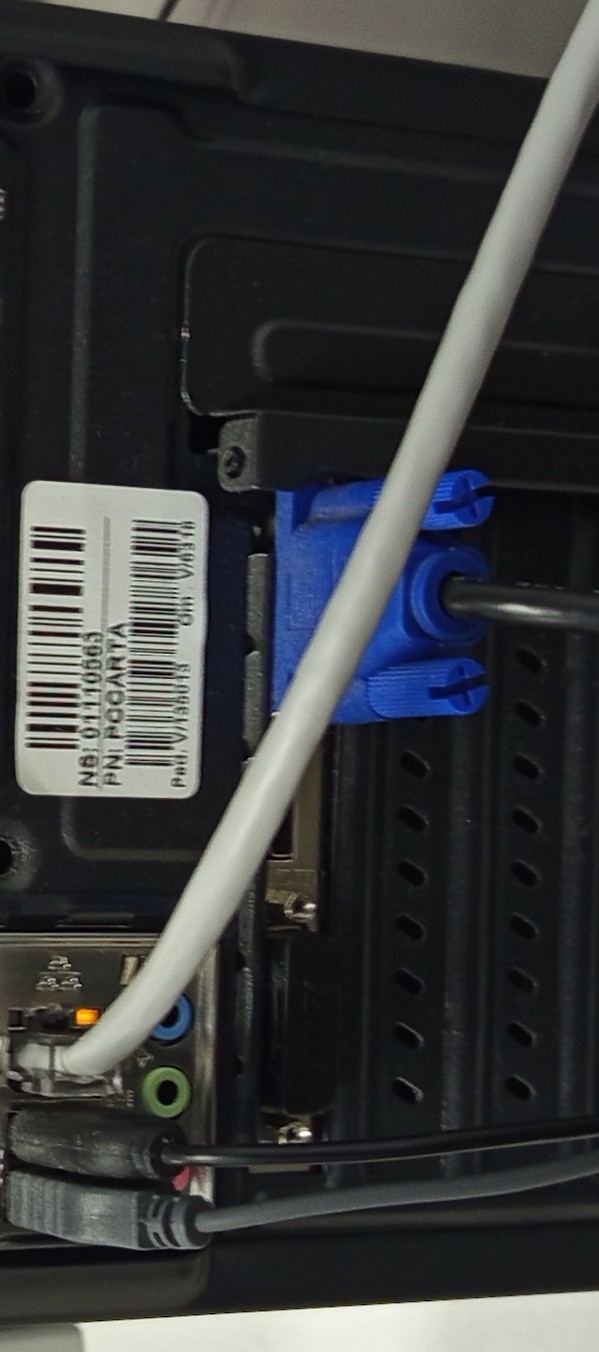 Por último, el cable de red ocupa el único puerto disponible de tipo RJ45. Como es un entorno académico, el cable no está conectado directamene al router. En su lugar, la configuración sugiere una conexión a la red de área local(LAN), que presumiblemente pasa por un switch.